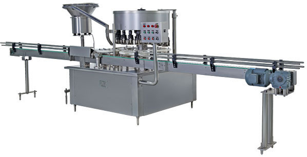 Diseñada para botellas de solución IV, la máquina tapadora de botella es principalmente usada para cargar y roscar las tapas, después de taponar. Emplea un oscilador electromagnético para compaginar las tapas, el cual ayuda a reducir la intensidad de trabajo. Adicionalmente, la máquina se caracteriza por alta eficiencia de trabajo gracias a que la entrada de botella es de forma suave y continua.