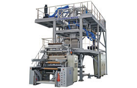 La línea de producción de bolsa de película IV sin PVC de coextrusión está diseñada para producir una película para infusión de 3 a 5 capas de material sin PVC para un empaque limpio y suave. Consiste de un sistema central de computador, un sistema de peso automático y alimentación de material, un sistema de extrusión, un molde de co-extrusión, un sistema de enfriado de la película, un sistema de control de burbujas de la película, un sistema de tracción giratorio, un sistema de corrección, cortadoras, máquinas de rebobinado y un perchero.